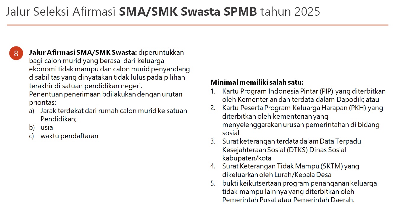 - Khusus jalur afirmasi SMA/SMK Swasta; Boleh menggunakan SKTM