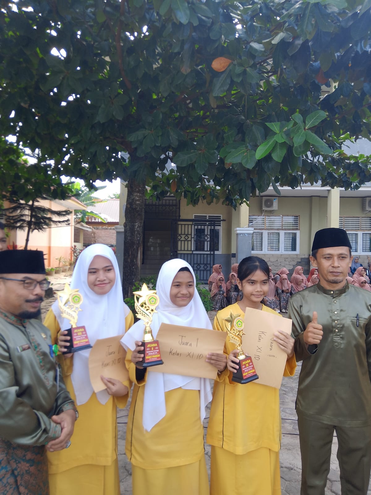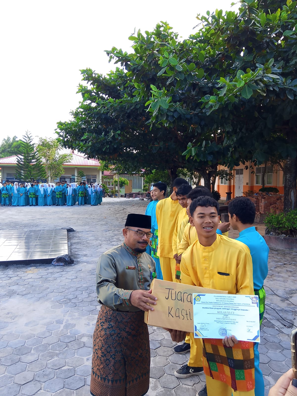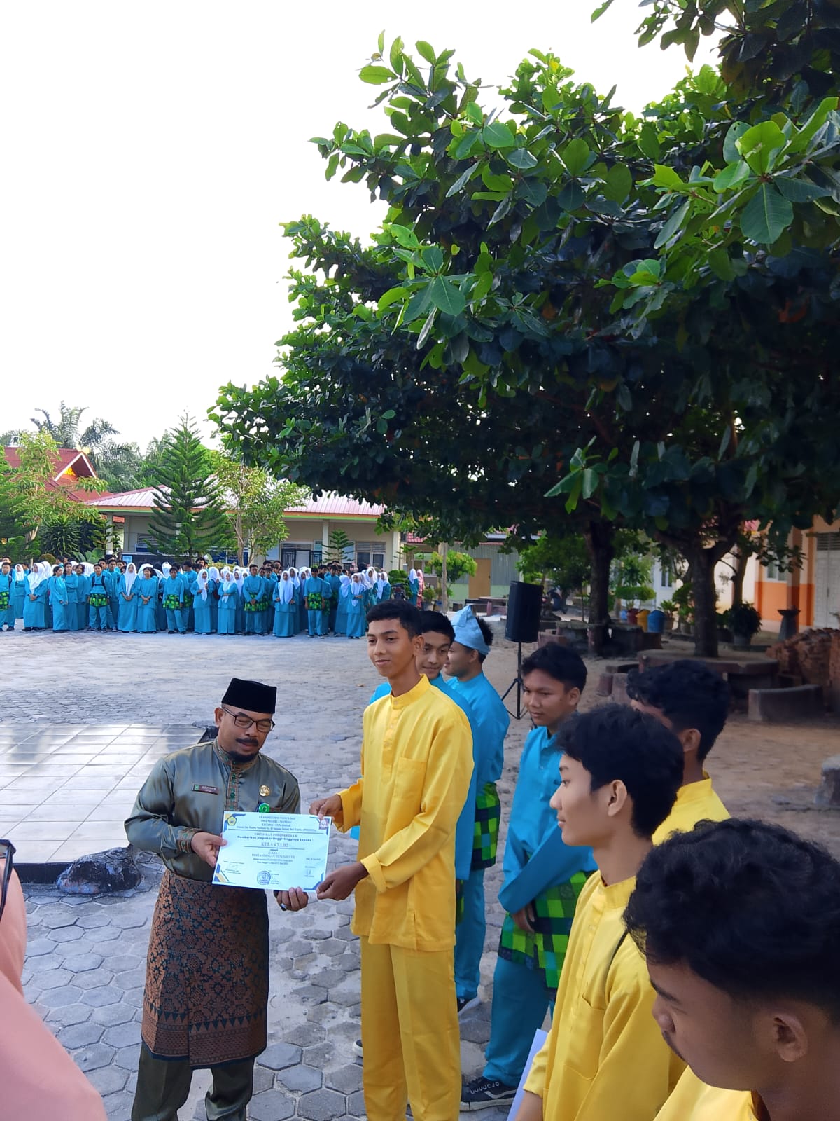 BATIN SOLAPAN (20/06). SMAN 3 Mandau melaksanakan kegiatan pembagian hasil belajar Semester Genap Tahun Ajaran 2024/2025, Jum'at, (20/06/2025) bertempat di halaman SMAN 3 Mandau, acara Pembagian hasil belajar semester genap ini menjadi moment penutup tahun ajaran 2024/2025, seluruh siswa berbaris di halaman SMAN 3 Mandau untuk mengetahui pengumuman juara kelas diambil dari peringkat ke tiga besar hingga peringkat pertama,dan di saksikan oleh guru dan wali murid yang hadir. Kegiatan pembagian hasil belajar merupakan momen penting yang menjadi refleksi dari proses pembelajaran yang telah dilalui oleh para peserta didik selama satu semester. Kegiatan ini tidak hanya menyampaikan hasil capaian akademik, tetapi juga menjadi ajang silaturahmi antara guru dan orang tua untuk bersama-sama membimbing anak dalam proses belajar dan pembentukan karakter.